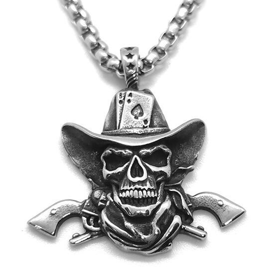 《QBOX 》FASHION 飾品【CBP8-1109】精緻個性嘻哈西部牛仔骷顱頭鑄造鈦鋼墬子項鍊/掛飾