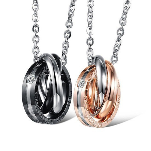 《 QBOX 》FASHION 飾品【C23N863】精緻個性三環鑲鑽情侶鈦鋼墬子項鍊(男/女單款)