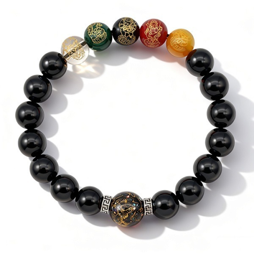 #五路財神黑曜石手鍊#國風祈福招財腕飾#多色財神珠日常飾品#黑曜石鎮宅聚福手鍊#新店開業佩戴首飾