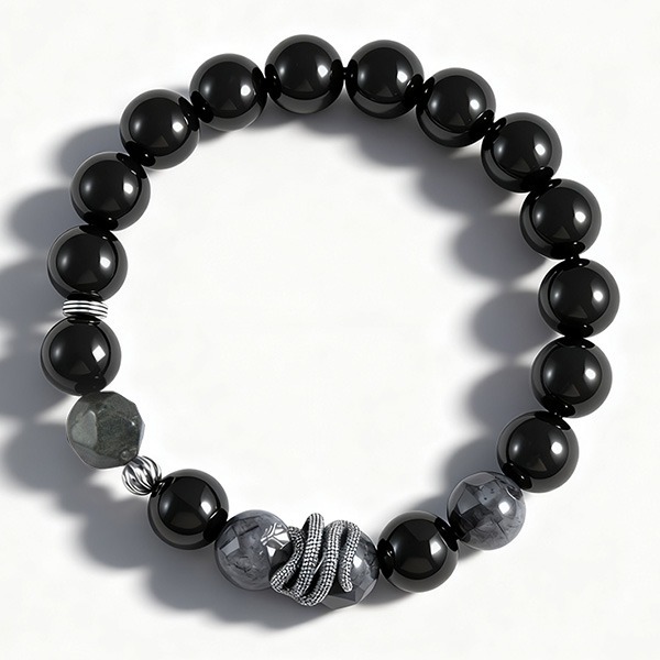 #純銀墨蛇纏繞串珠手鍊#黑曜石辟邪鎮場手鍊#黑髮晶強化氣場腕飾#神秘蛻變日常配手飾#暗黑主題穿搭配飾
