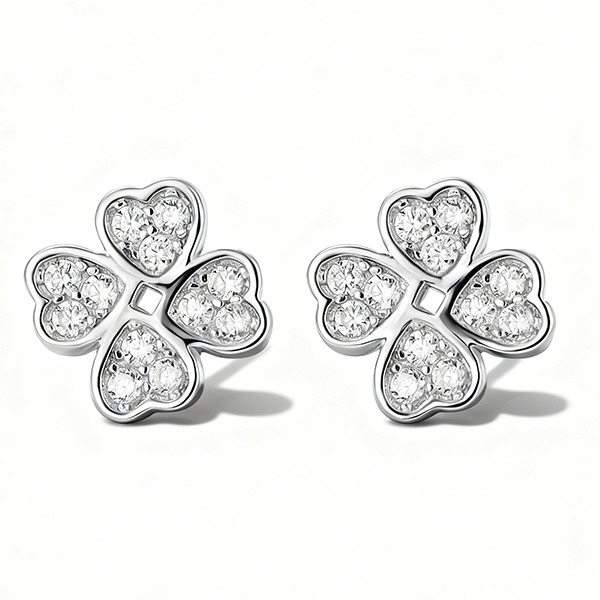 #幸運星簇四葉草耳釘#招運幸運符印配飾#緻閃耀耳間亮點#純銀滿鑽甜潤耳飾#職場輕甜穿搭耳環