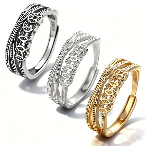 #財纏多圈純銀銅錢戒指#銅錢紋招財日常戒指#好友輕奢茶聚會佩戴首飾