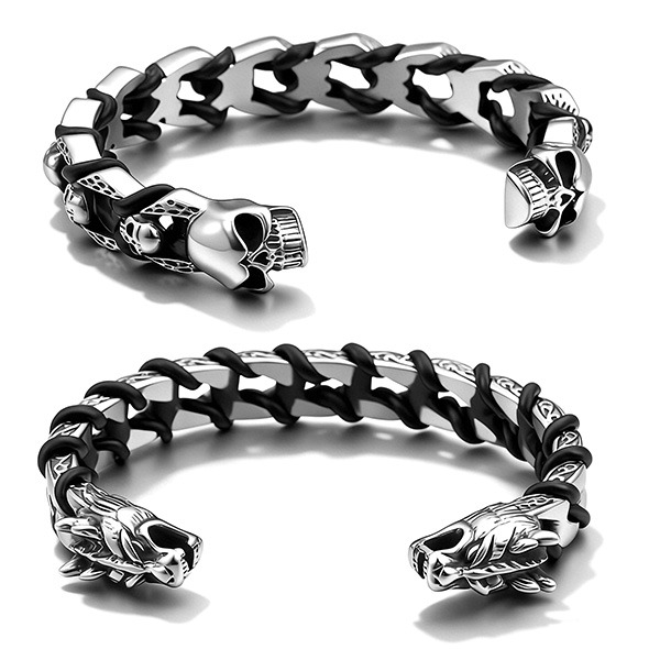 #冥骷戰龍雙款鈦鋼手鐲#暗黑骷髏硬核飾品#戰龍力量野獸配飾#重工肌理暗黑手鐲#機車騎行聚會佩戴首飾