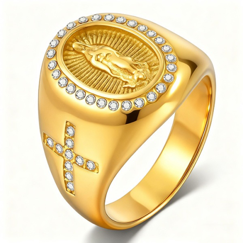 #金耀聖母鈦鋼戒指#鈦鋼聖母十字架戒飾#信仰護佑指環#聖母浮雕金耀戒飾#教堂禮拜佩戴首飾