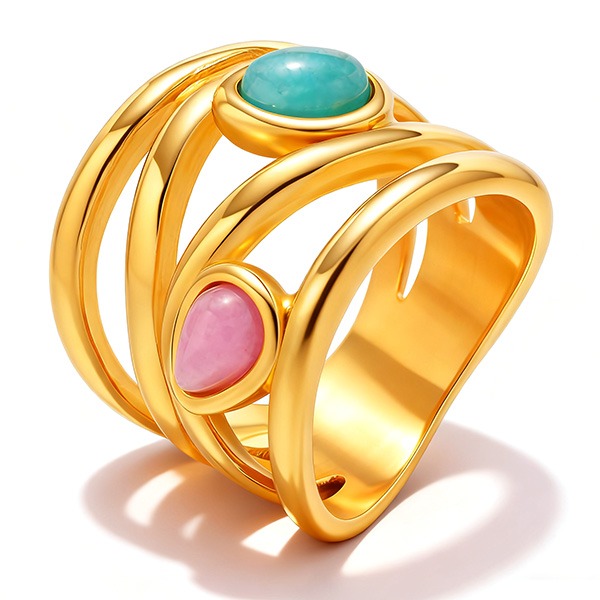 #鈦鋼鍍金多層纏繞戒飾#雙彩寶鈦鋼戒指#輕奢活力指尖戒指#雙彩寶撞色日常戒指#下午茶聚會穿搭首飾