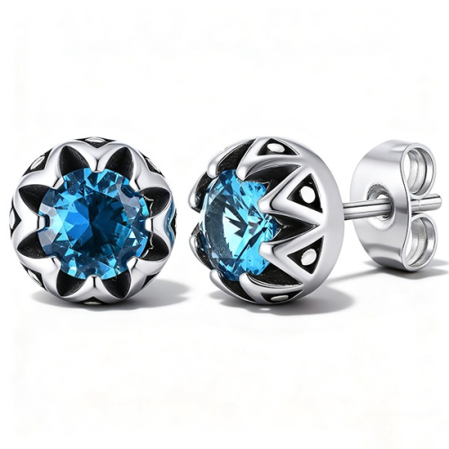 #藍焰鋯石花冠鈦鋼耳環#花型包邊絢麗耳飾#冷冽深海藍鑽配飾#立體花型亮點耳飾#職場輕熟穿搭首飾