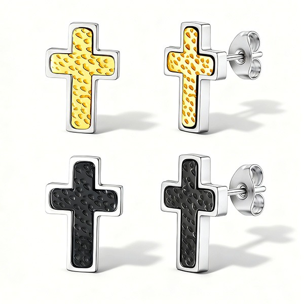 #個性鈦鋼潮品#雙色紋理十字架耳釘#信仰潮流雙風格配飾#莊重百搭十字耳環#週末街頭佩戴首飾