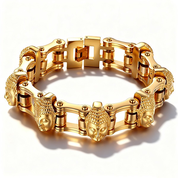 #金佛梵鏈佛頭手鍊#鈦鋼鎏金祈福飾品#平安護佑金色手鍊#佛相拼接質感手鍊#禪意茶會雅集佩戴首飾
