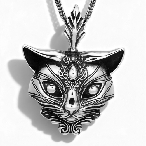 #純銀貓系神秘頸飾#靈動神秘飾品#重工暗紋貓咪配飾#暗黑質感貓臉吊飾#神秘美學穿搭首飾