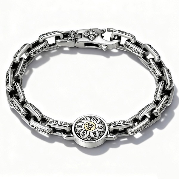 #六字真言梵咒圓牌純銀手鍊#純銀轉運祈福飾品#神聖護佑手環#可轉動梵咒圓牌手鍊#宗教符紋日常配飾