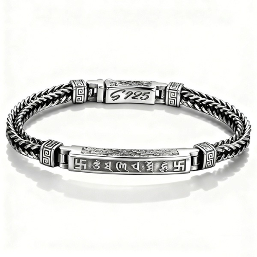 #六字真言手鍊飾品#東方文化銀飾#編織紋純銀手鍊#茶會小聚佩戴首飾#純銀卍字手鍊