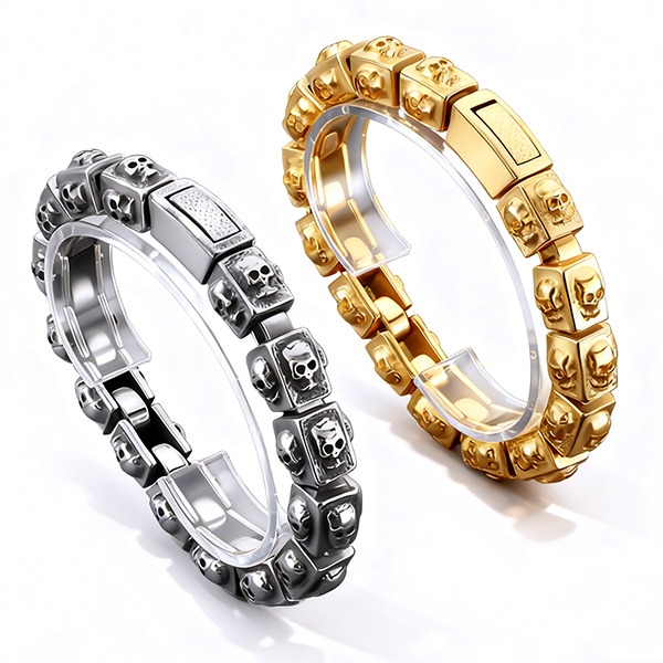 #鈦鋼骷顱手鍊#暗黑系個性飾品#立體方形骷顱拼接手鍊#男士叛逆風飾品#音樂派對穿搭首飾