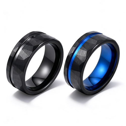 #黑藍雙款鎢鋼戒指#黑藍冷冽質感戒飾#菱面刻紋硬核戒指#商務談判佩戴首飾#磨防刮鎢鋼配飾