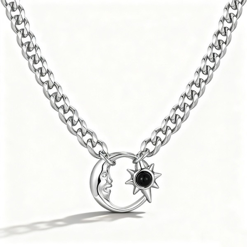 #日月相嵌項鍊#日月平衡氣場頸飾#輕酷日常頸飾#鈦鋼耐磨日常項鍊#輕酷風穿搭首飾