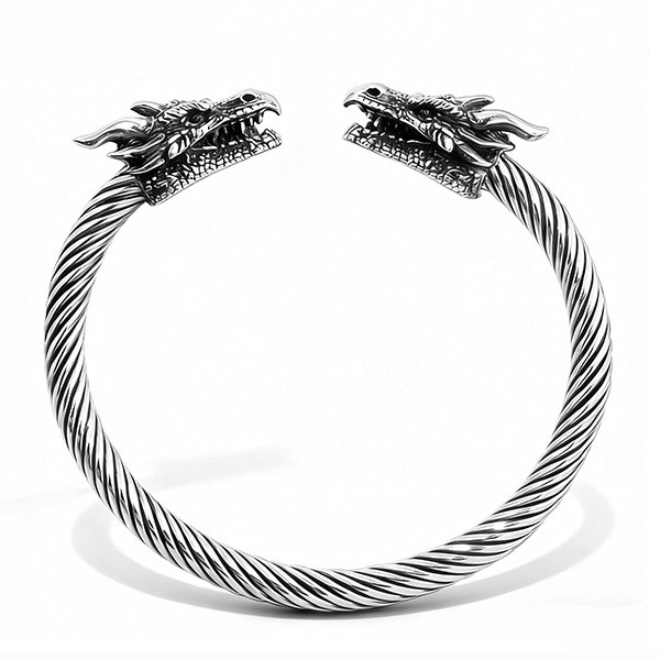 搭做舊皮衣 + 工裝長褲佩戴,雙頭龍的霸氣造型與扭紋鐲身的立體肌理,會讓同好主動搭話:「這手鐲的國風細節太炸!龍頭張揚又耐造,完全是音樂節的焦點飾品」。