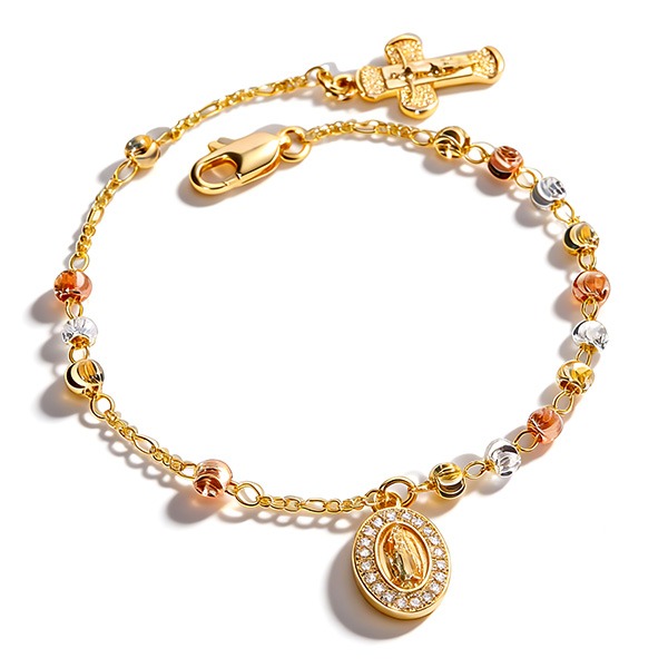 搭米白色棉麻洋裝佩戴,聖母墜飾的溫柔細節與鑲鑽質感,會讓同儕主動搭話:「這手鍊的信仰細節好溫柔!輕奢質感不會太浮誇,禮拜時戴剛剛好」。