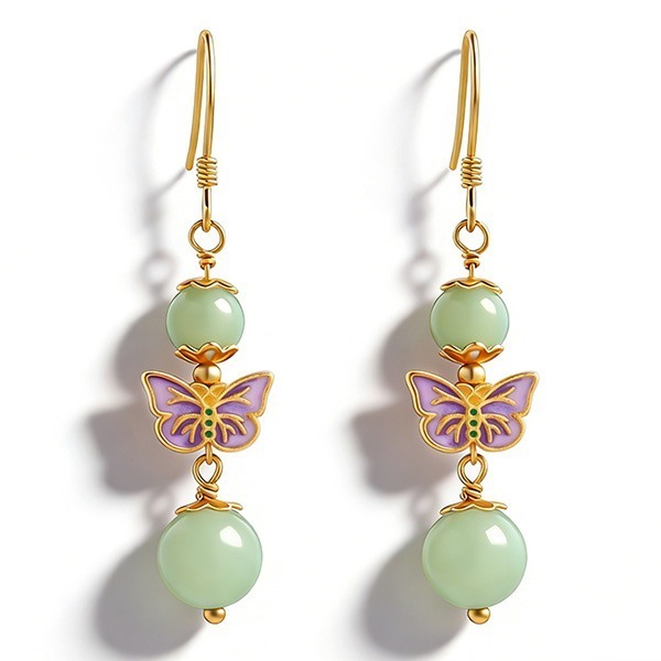 搭淺綠色新中式連衣裙或棉麻襯衫佩戴,和田玉的溫潤質感與蝴蝶的靈動細節相互映襯,會讓閨蜜主動搭話:「這耳墜太有東方韻味!和田玉溫柔又帶蝴蝶招緣寓意,賞花戴起來氣質滿分又討好彩頭」