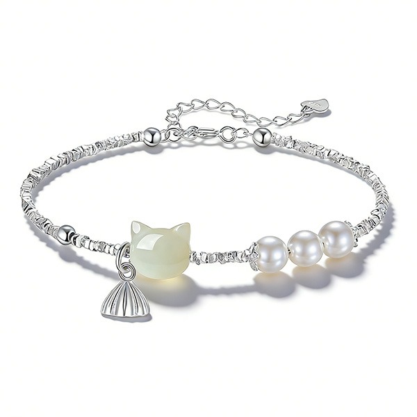 【商品規格】S925銀/和田玉/仿珍珠/拋光處理(防退色,防過敏)