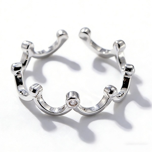 《 QBOX 》FASHION 飾品【RA25】精緻個性簡約皇冠鑲鑽S925純銀/泰銀開口戒指
