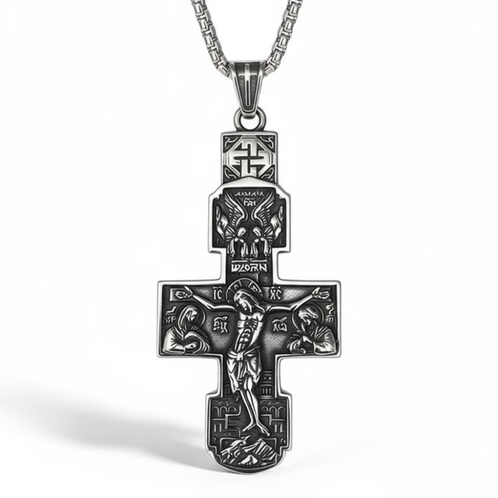搭配深色長袍或簡約素色上衣佩戴,十字架的神聖浮雕與宗教氛圍完美契合,信徒會主動稱讚:「這吊墜太有韻味!聖像細節超還原,禮拜戴直接拉滿虔誠感」,輕鬆成為場中焦點。