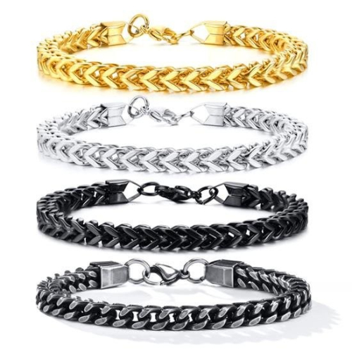 《 QBOX 》FASHION 飾品【GBR-625】精緻個性歐美仿舊龍骨方面環扣鈦鋼手鍊/手環