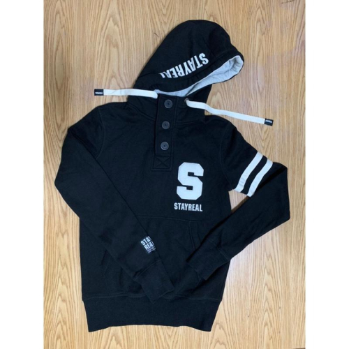STAYREAL大S厚棉帽夾 連帽大學t 黑標XS