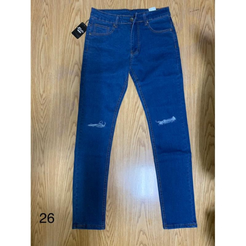 全新男版直筒牛仔褲 破褲 一字割 藍色30腰