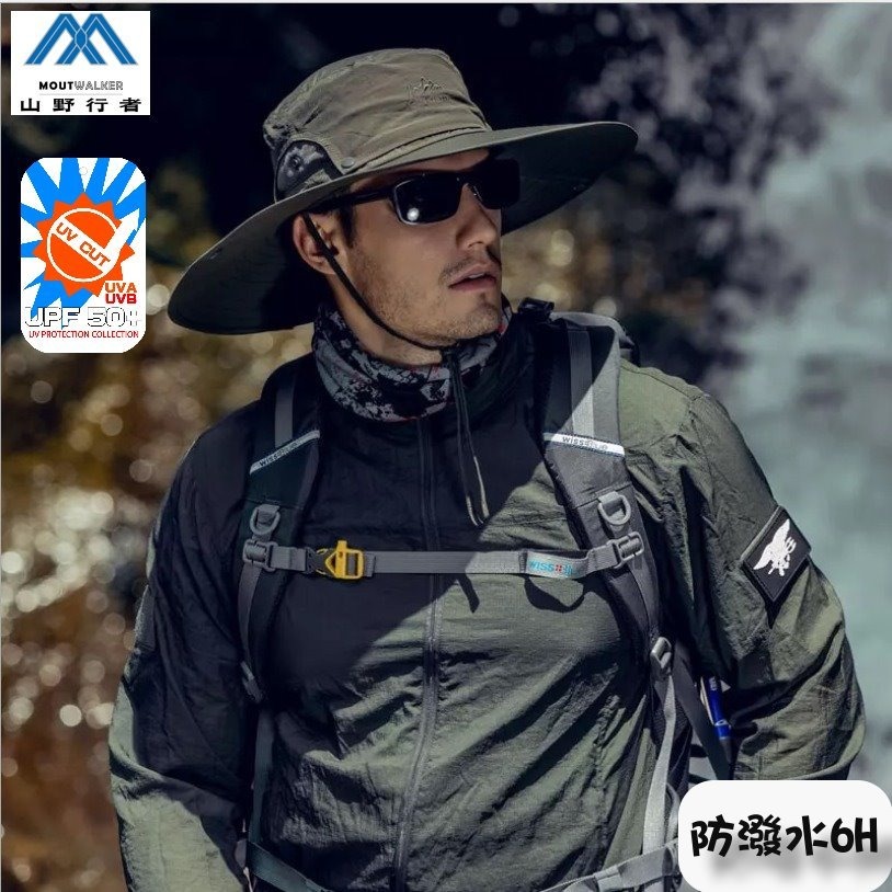 [山野行者]MW-0987 抗UV50+超大帽檐防潑水6H戶外防曬兩用帽-登山/休閒/攀岩/生存遊戲
