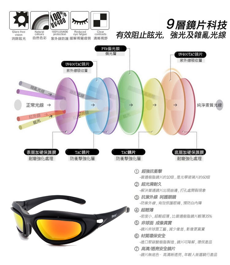 *符合美國U.S. MIL SPEC MIL-PRF-31013軍方防護鏡安全標準