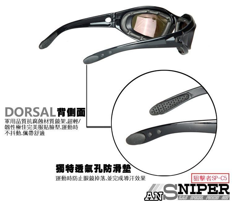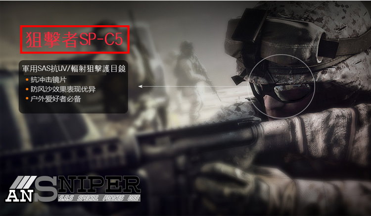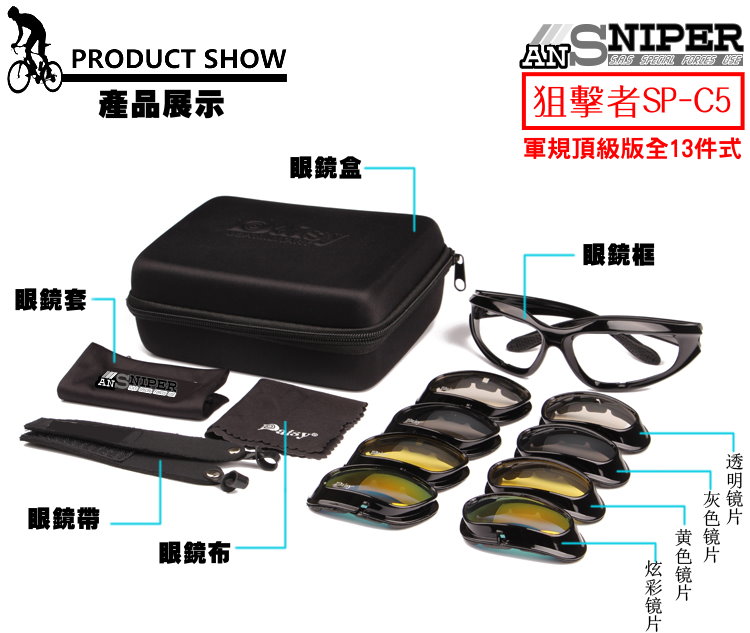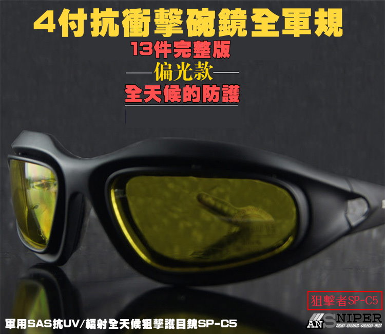 【ANSNIPER】亮黑SP-Ci5/S.A.S軍規全天候抗UV藍光鏡碗式戰術眼鏡外銷13件組