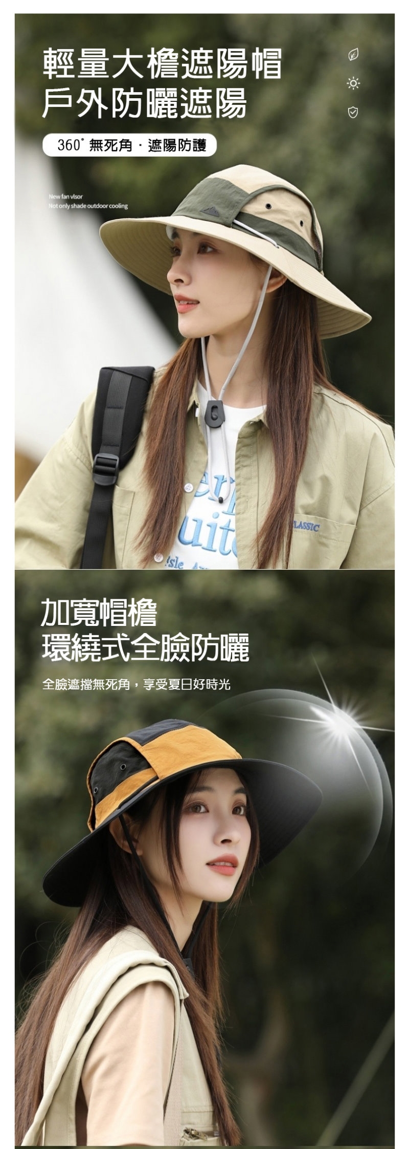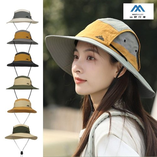 [山野行者]MW-2898(外貿品)抗UV防水拼接戶外時尚透氣大簷男女漁夫帽(帽帶可調)