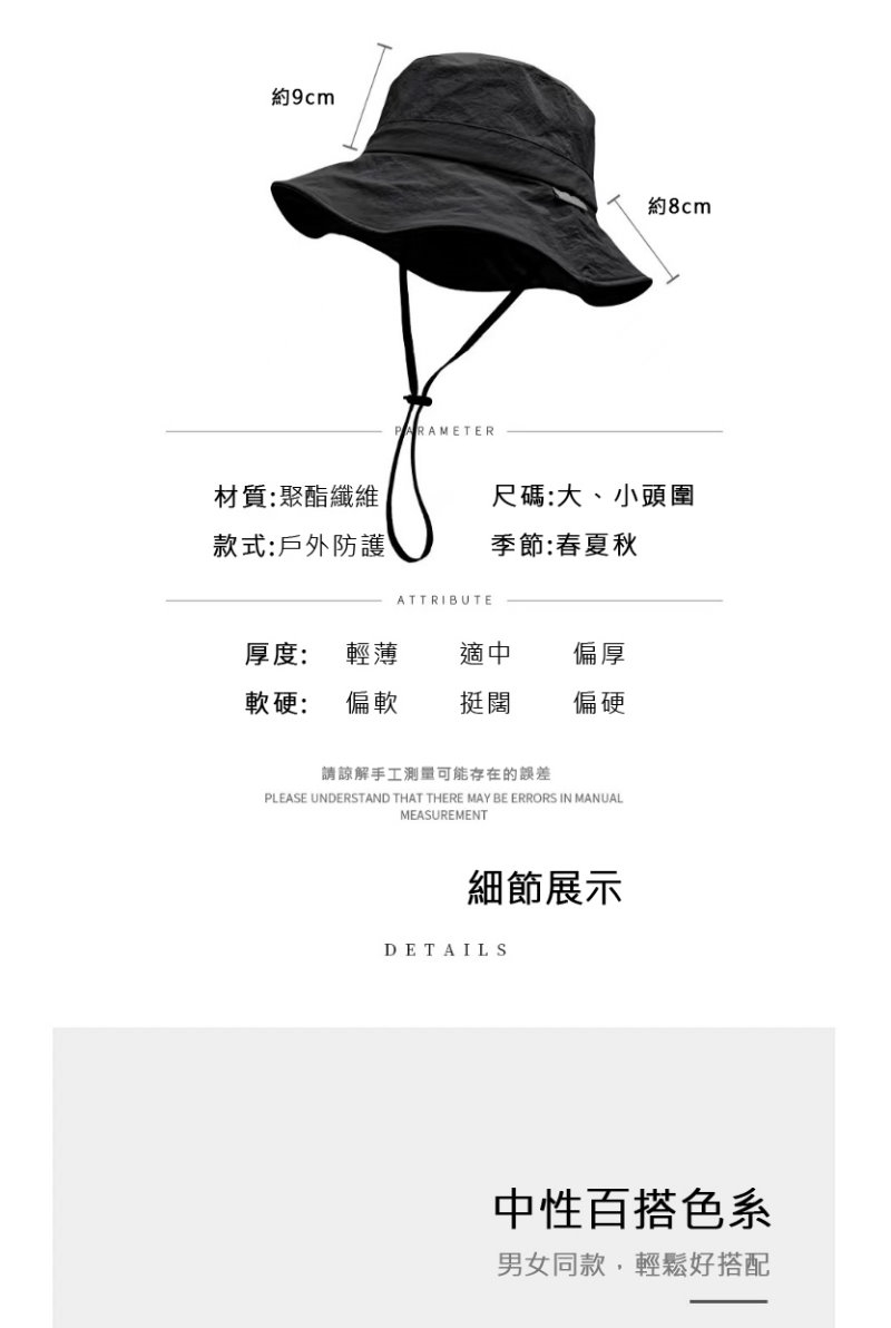 [山野行者]MW-J361抗UV防潑水可折疊金屬簷百變造型男女(小學童)漁夫帽(頭圍帽帶可調)
