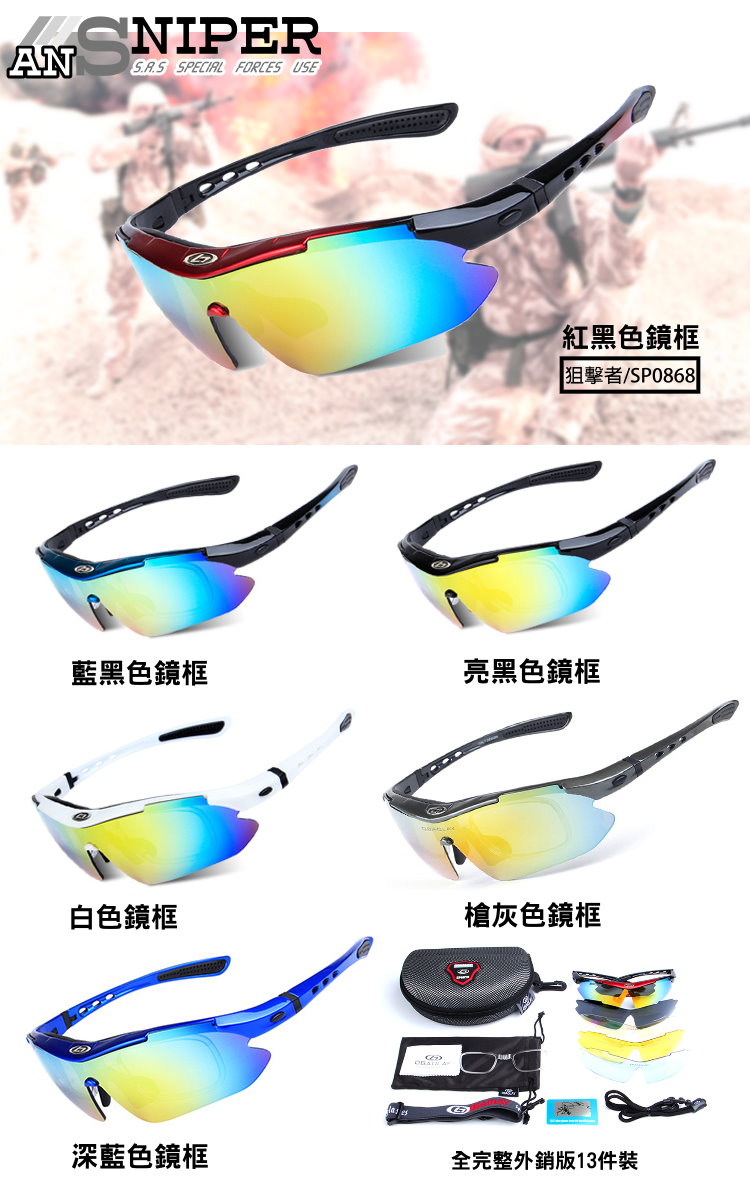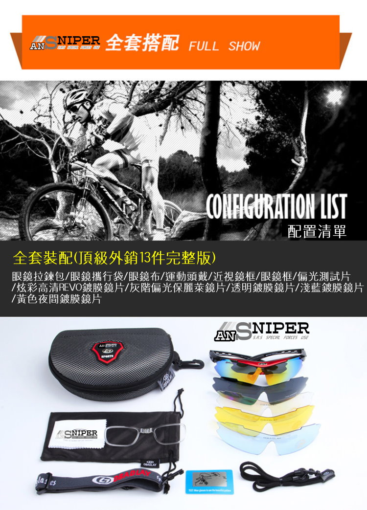 [英國ANSNIPER]SP0868 抗UV藍光偏光REVO高清運動鏡外銷13件組