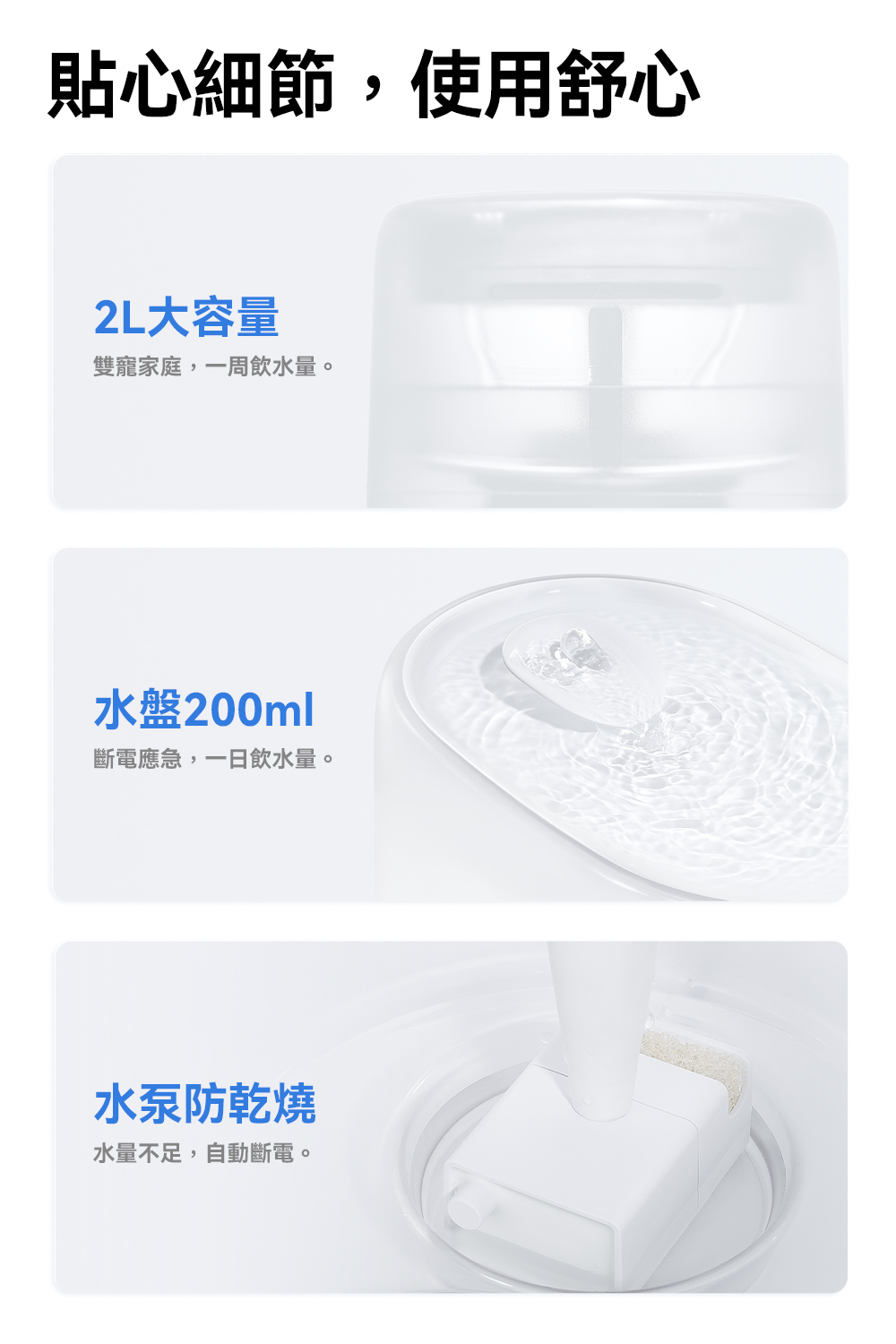 - 自動偵測 缺水即斷電