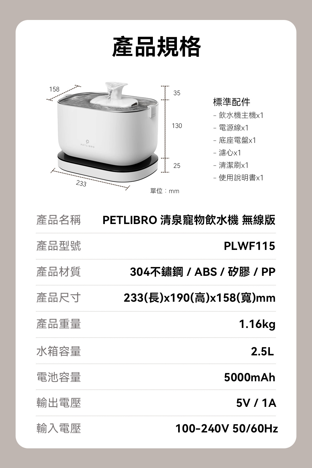 產品名稱:清泉寵物飲水機 充電款