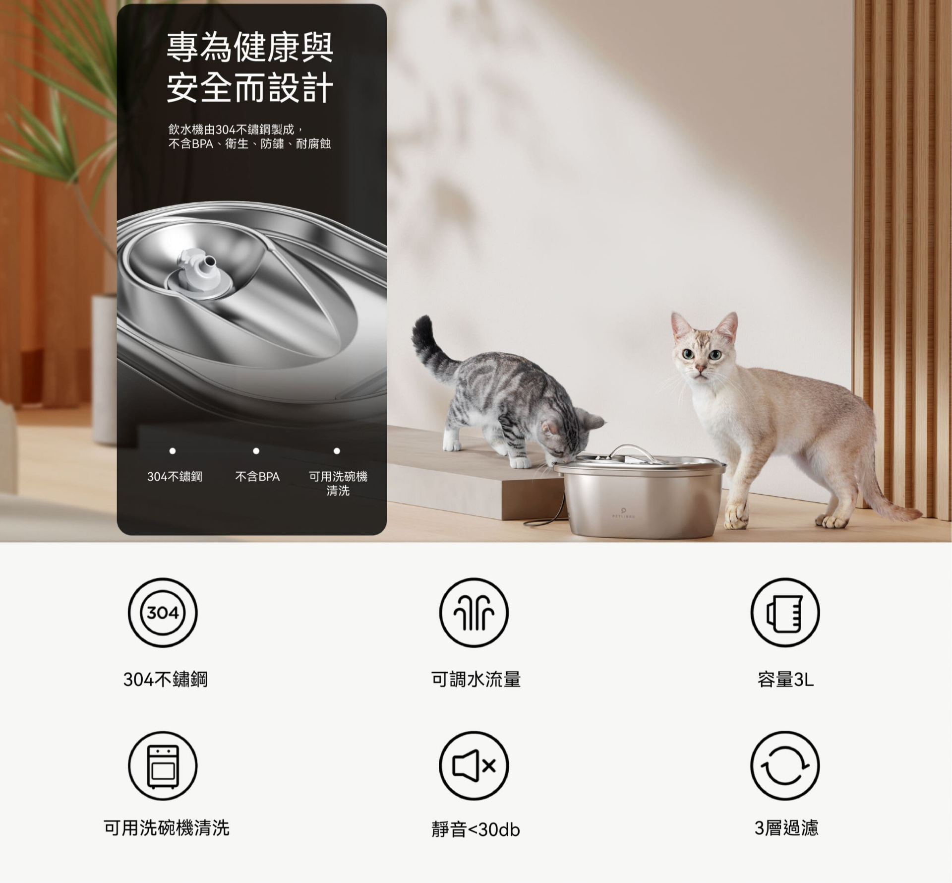 PETLIBRO|真不鏽鋼寵物飲水機 寵物飲水機 自動飲水機 無線飲水機 活水機