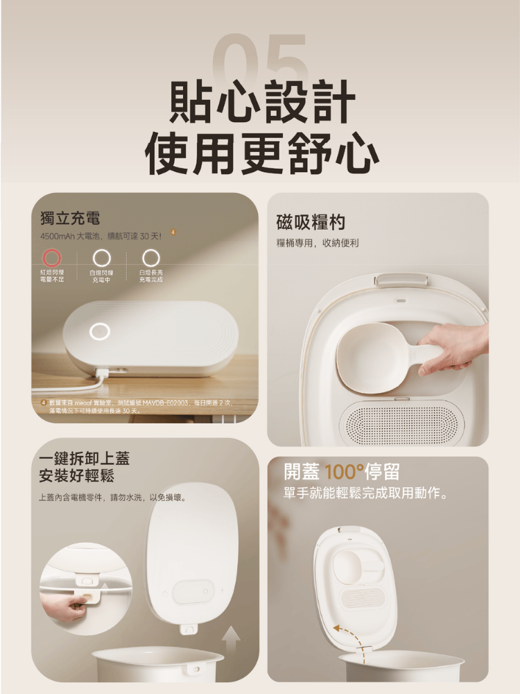- 可拆卸電池不需抱桶充電