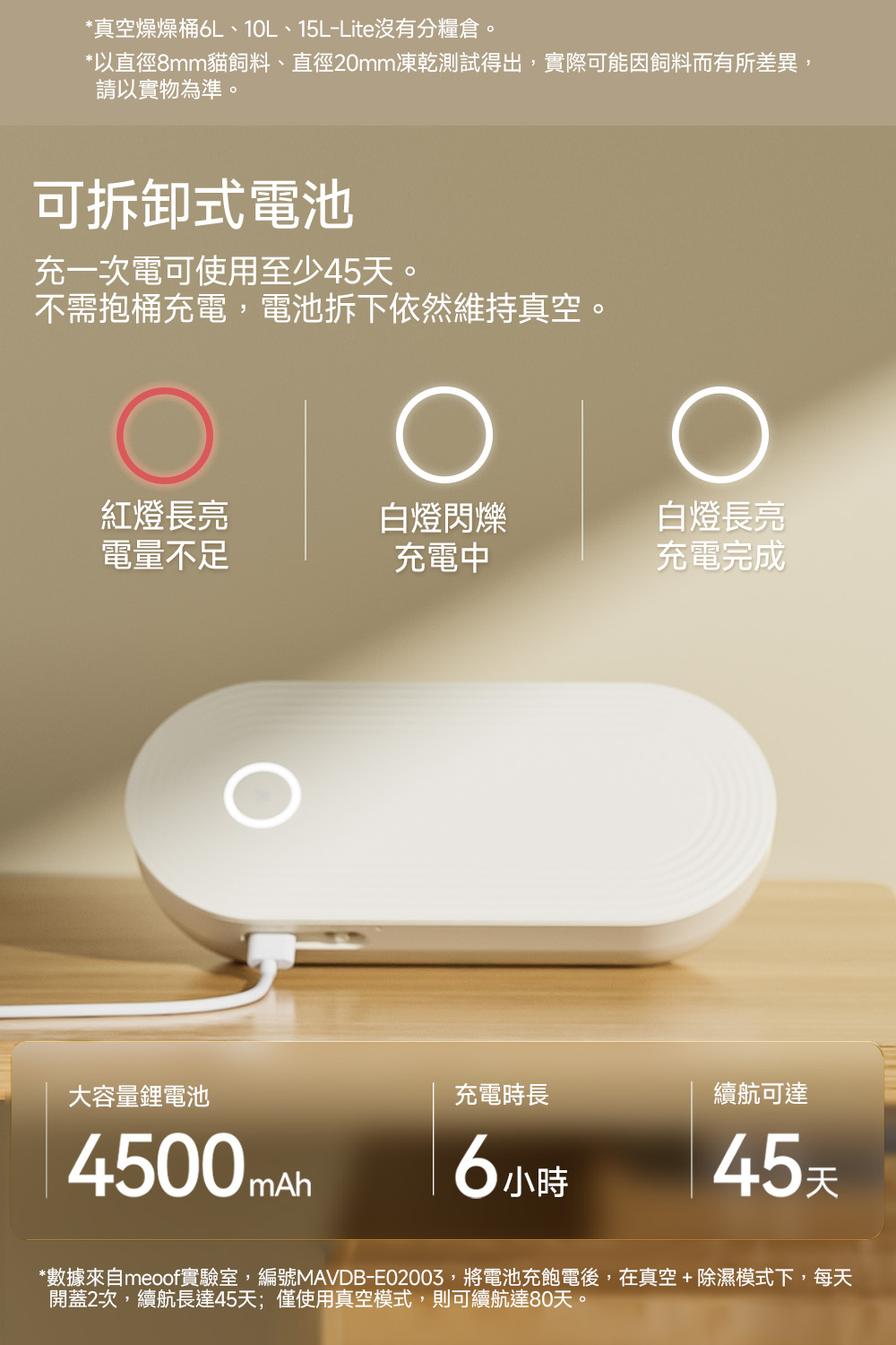 - 可拆卸電池不需抱桶充電
