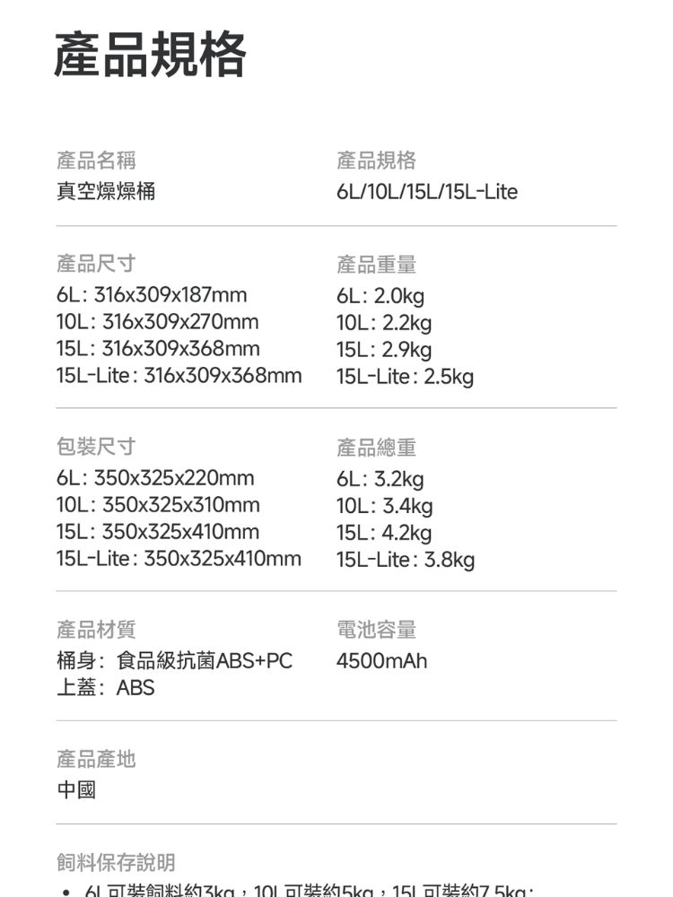 【注意】: 6L / 10L無分倉,需要分倉請選擇15L / 30L
