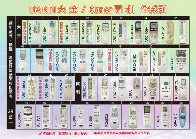 【企鵝寶寶】DA-ARC-29(適用大金/開利)全系列冷暖氣機遙控器