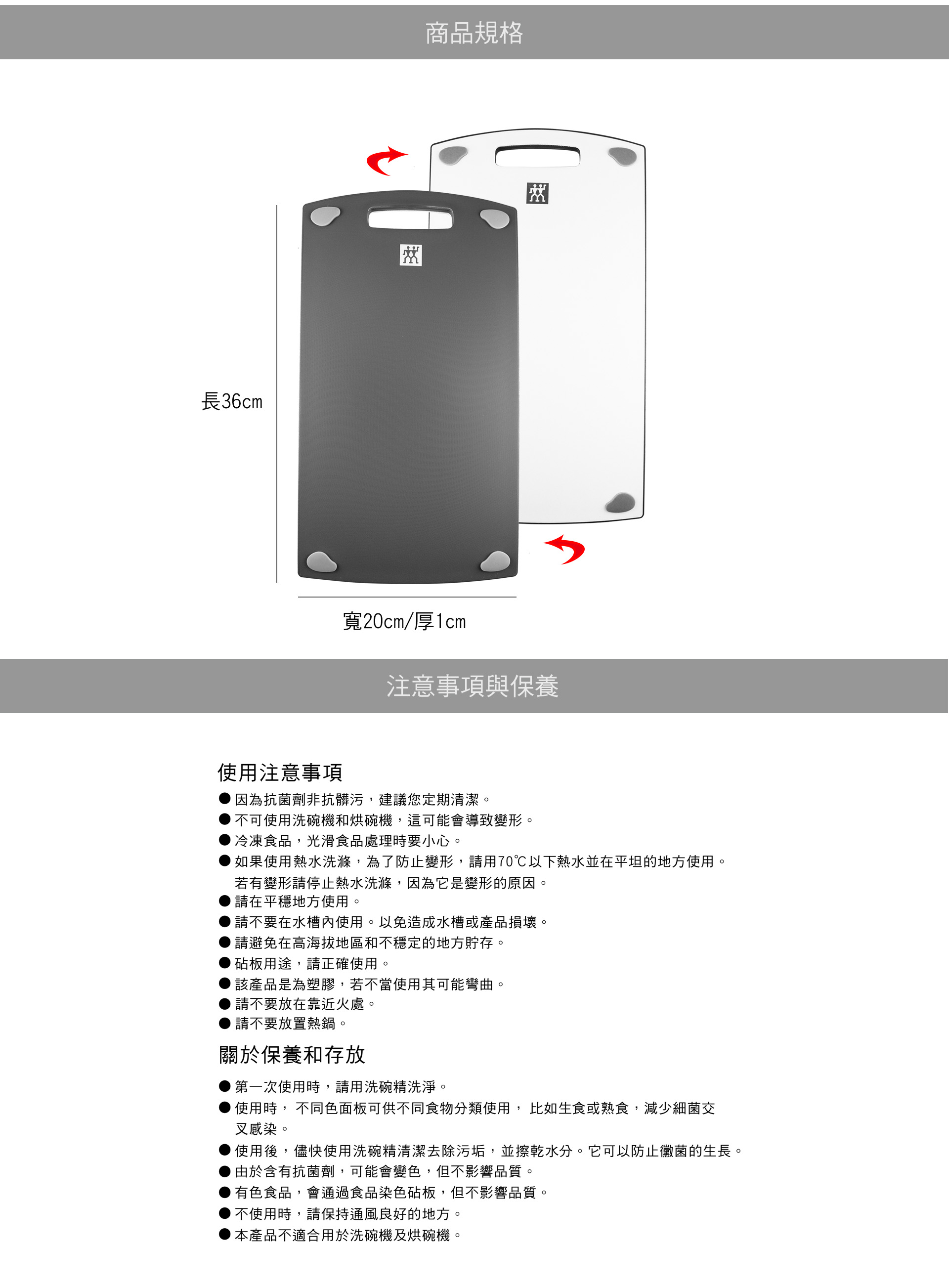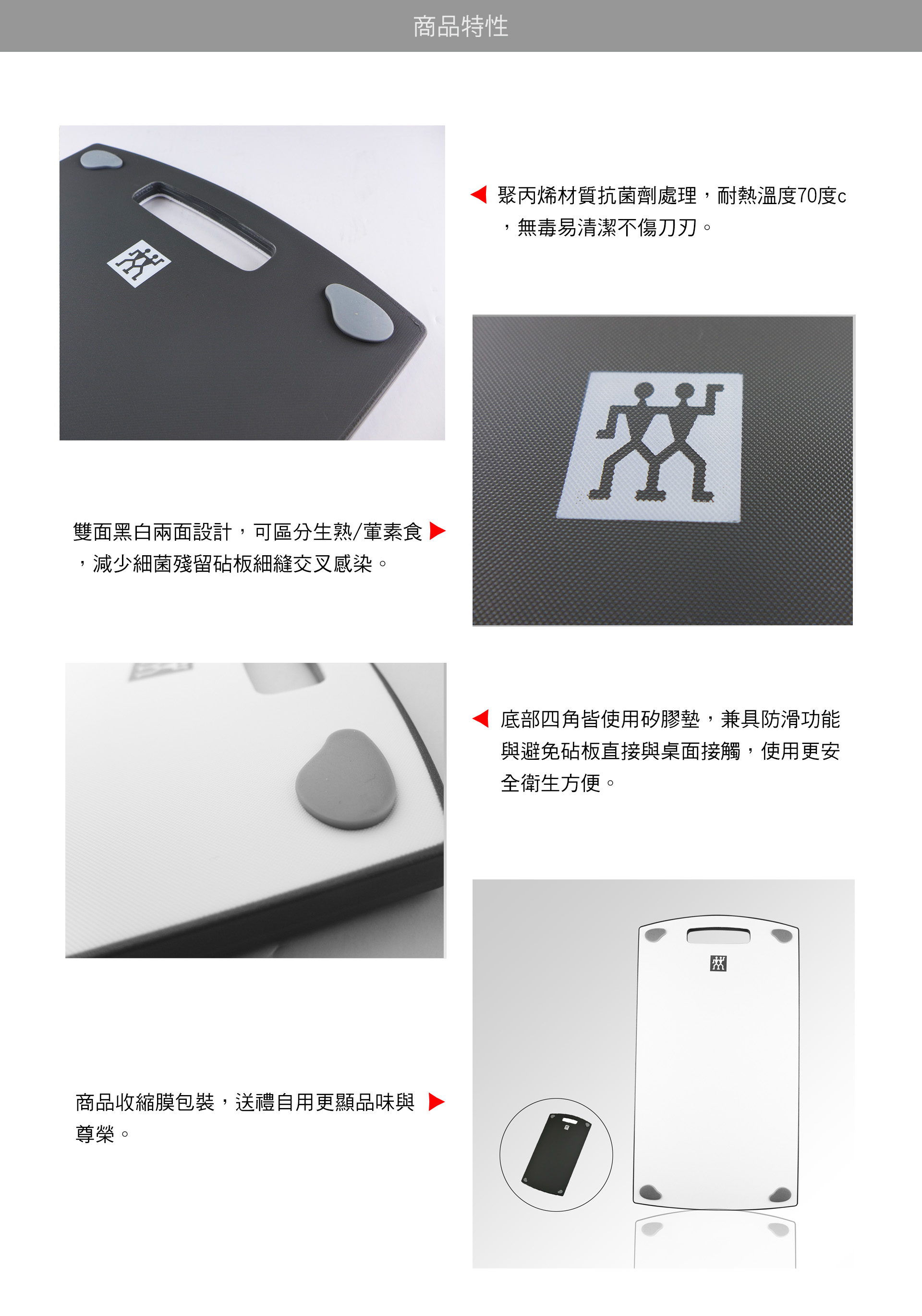 *聚丙烯材質抗菌劑處理,耐熱溫度70度c,無毒易清潔不傷刀刃。