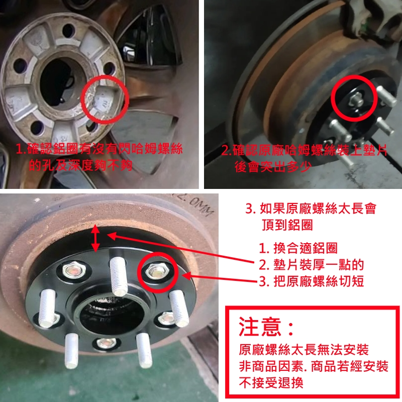 安裝時請先確認鋁圈是否有切孔可以閃避原廠哈姆螺絲