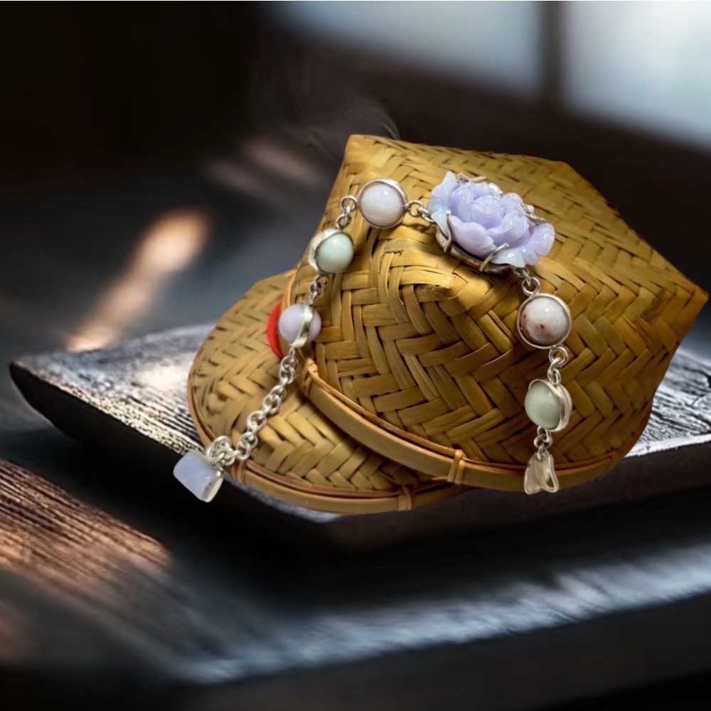 紫色翡翠:翡翠作為大自然的瑰寶,不僅擁有卓越的光澤,紫色的翡翠更象徵著高貴、神秘與智慧。這份特殊的色彩為牡丹賦予了一份特殊的高雅氣質。紫色翡翠牡丹花3.57x2.9x1.6cm~