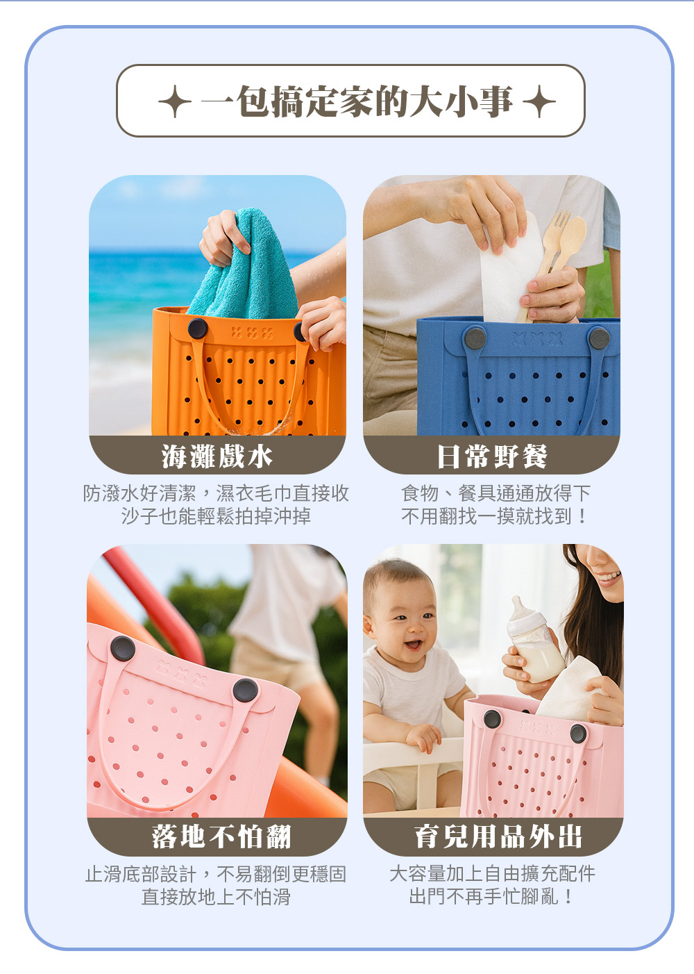 肩背漫遊包 EVA包 防水包 大容量包 媽媽包 媽媽包 沙灘包 托特包 野餐包 海灘包 戲水包 一體成型 底部止滑