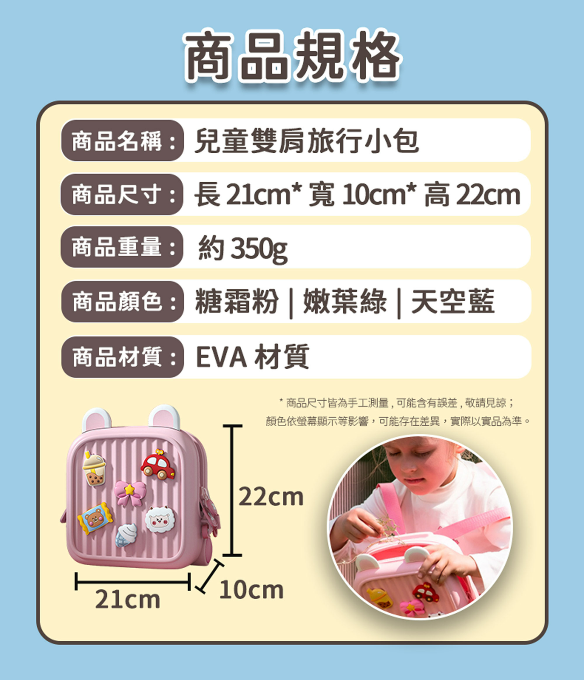 兒童雙肩旅行小包 兒童包包 兒童禮物 防水包 EVA 全防水 超輕量 兒童包 可調節背帶 一體成型 親子出遊