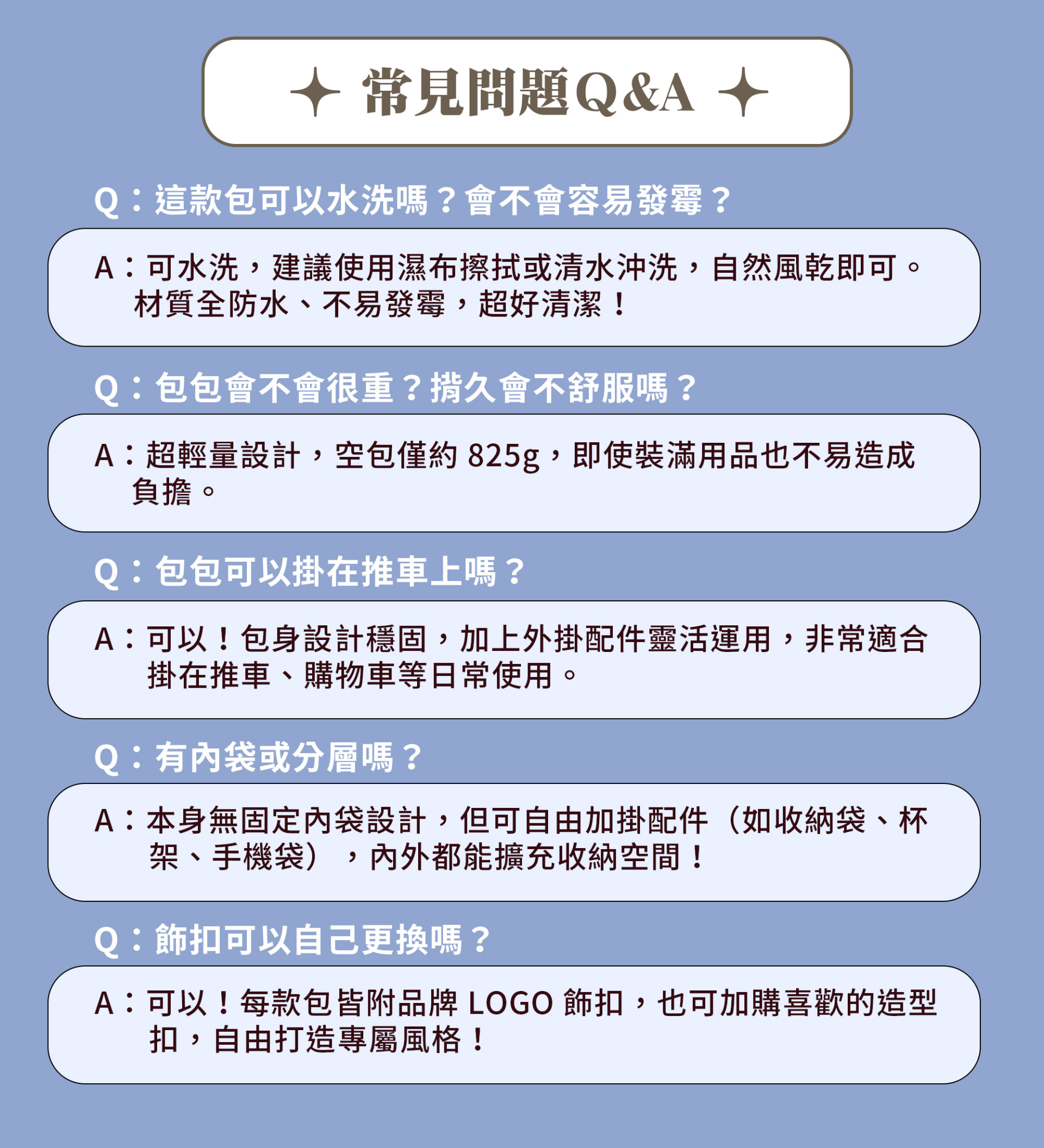 不怕髒、不怕濕,隨手擦拭,天天像新包一樣乾淨