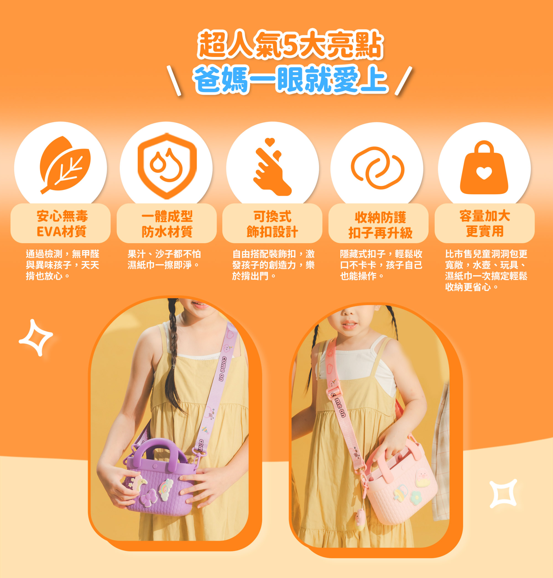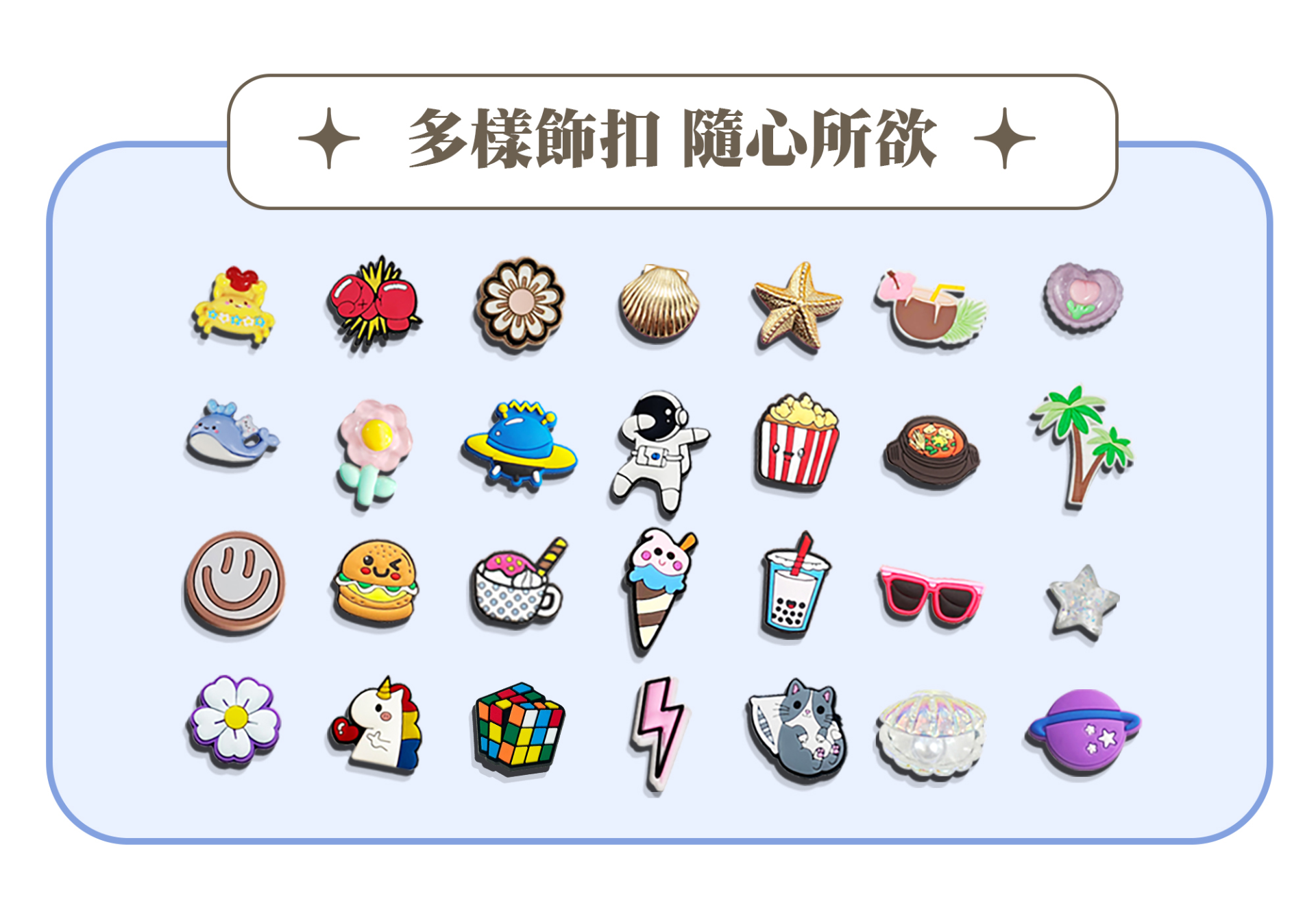 ✅ 可換式飾扣設計