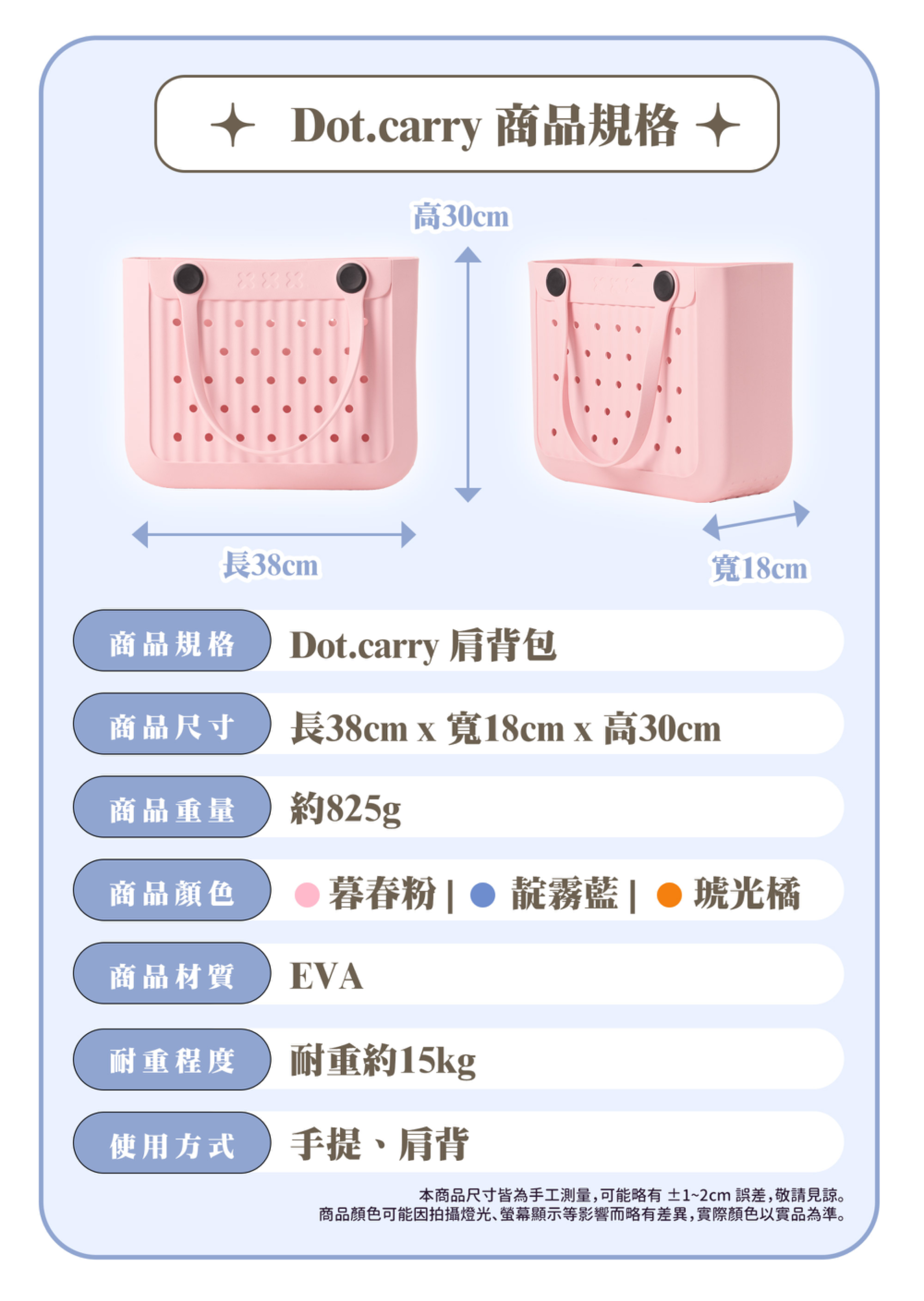 • 暮春粉(肩背漫遊包) / 晴空藍(樂樂包)