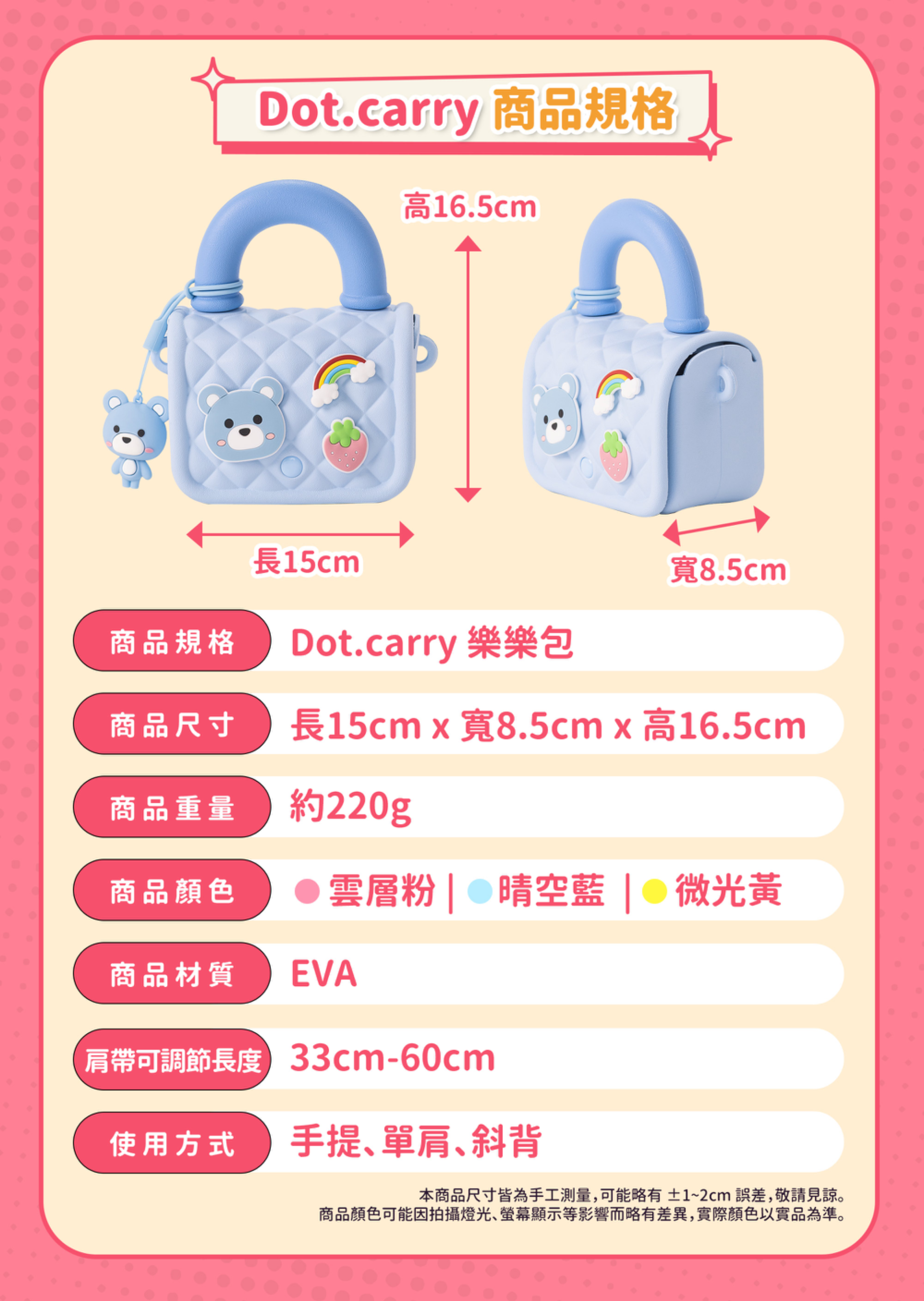 • 靛霧藍(肩背漫遊包) / 雲層粉(樂樂包)