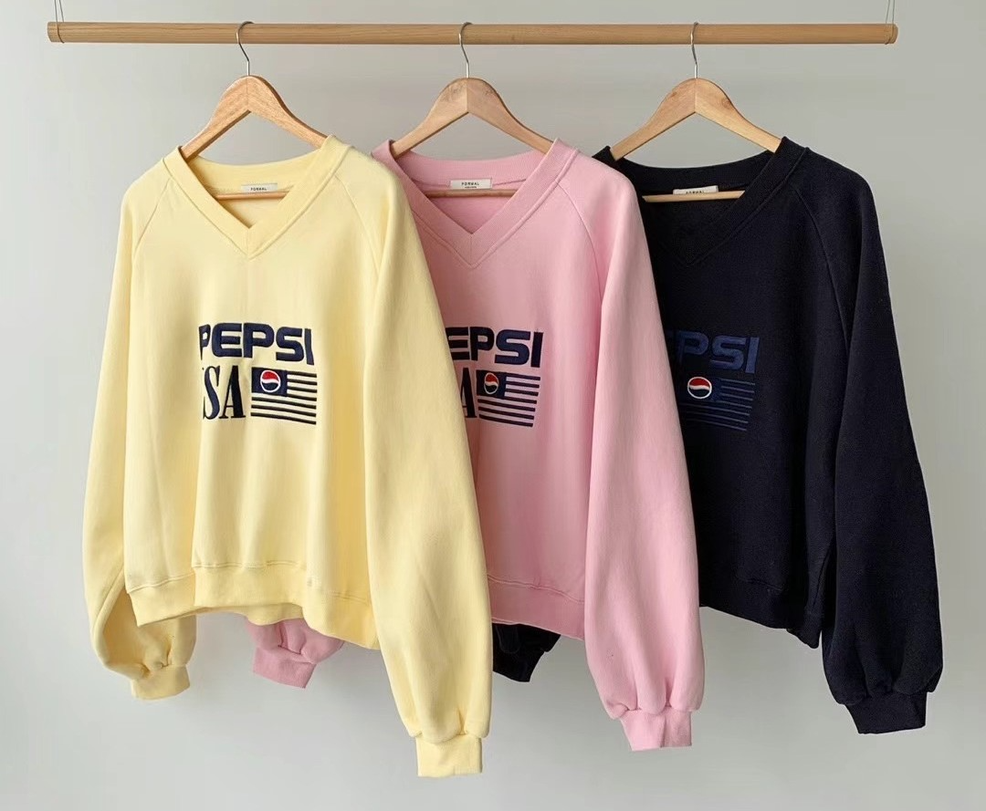 正韓 美國百事可樂V領大學T 現貨米黃/藍黑